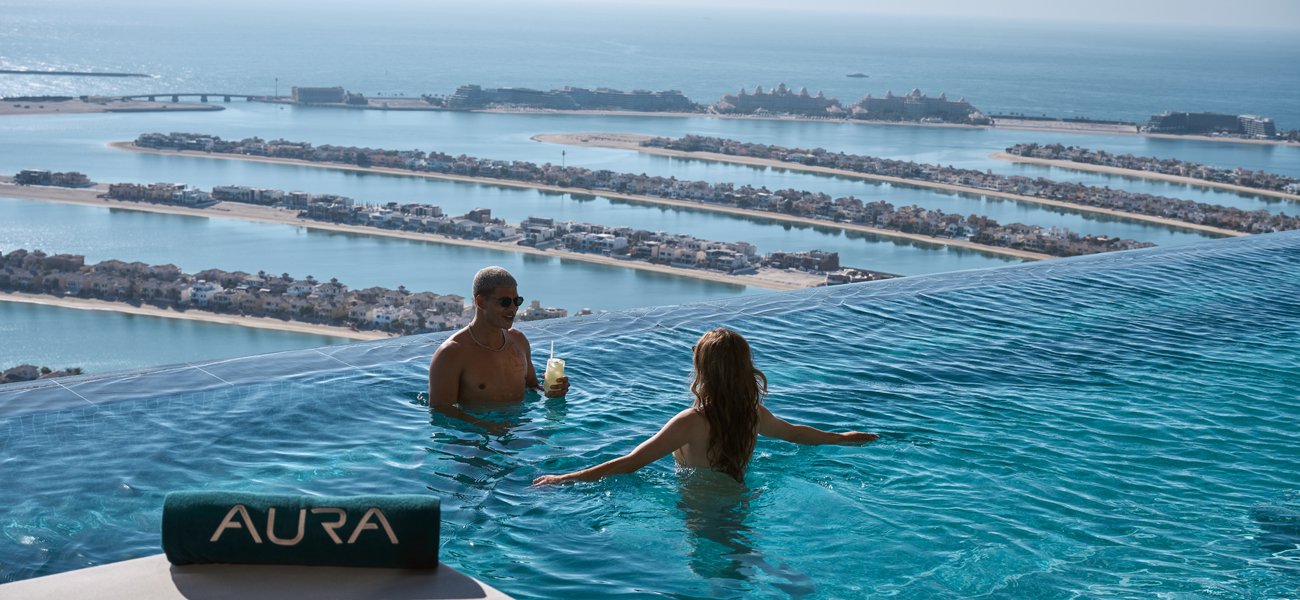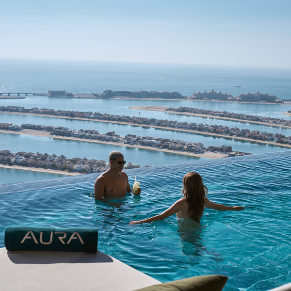 Pool Entry Prices, include access to AURA for the duration of your chosen time slot, allocated seating, use of the 360-degree skypool and 1 complimentary towel per person, additional towel and AURA robe rental is available. Complimentary changing facilities and lockers are available. Entry prices do not include any food or beverage and are non-redeemable. No outside food or drinks are permitted. For reservations inclusive of a minimum spend, any unredeemed amount on the day is non-refundable, non-transferable and shall be forfeited.